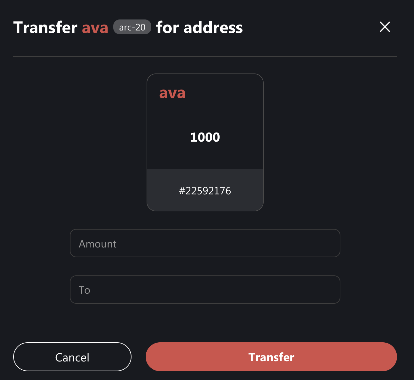 ### Click Transfer, fill in the quantity and address, and complete the transfer